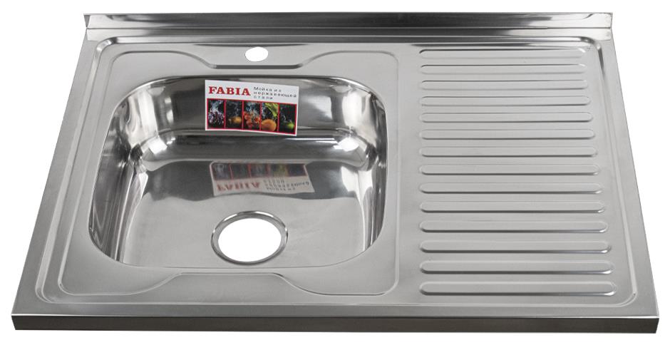 Накладная мойка FABIA из нержавеющей стали отличный вариант для кухни, она прослужит многие годы. Классическая форма и хромированный цвет гармонично впишутся в любой интерьер и никогда не выйдут из моды. Оптимальный размер с площадкой для посуды позволяет свободно мыть посуду, без страха её разбить. Мойка устанавливается на тумбочку. Практичная площадка, расположенная по центру, даёт возможность вмонтировать любую понравившуюся модель смесителя. В комплекте сифон с большой горловиной с переливом. Габаритные размеры: ширина 800 мм, длина 600 мм, глубина 160 мм, толщина стали 0,6 мм. Вес 3,400 кг, объём 0,02593 м3.