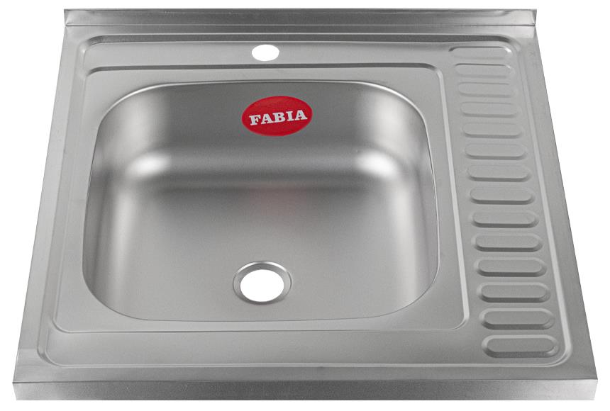 Накладная мойка FABIA из нержавеющей стали отличный вариант для кухни в стиле «эконом», она прослужит многие годы. Классическая форма и матовый цвет «хром» гармонично впишутся в любой интерьер и никогда не выйдут из моды. Оптимальный размер с площадкой для посуды позволяет свободно мыть посуду, без страха её разбить. Мойка устанавливается на тумбочку. Практичная площадка, расположенная по центру, даёт возможность вмонтировать любую понравившуюся модель смесителя. Габаритные размеры: ширина 600 мм, длина 600 мм, глубина 160 мм, толщина стали 0,4 мм. Вес 1,600 кг, объём 0,01461 м3.