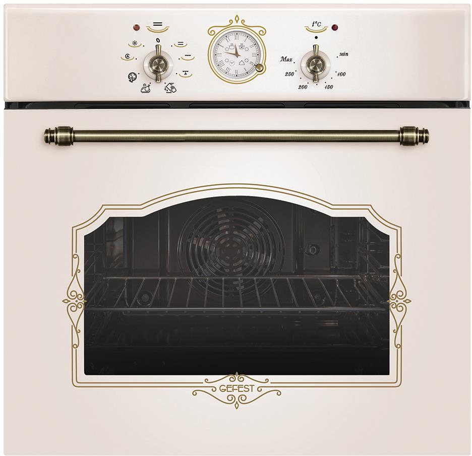 Духовой шкаф. Цвет: кремовый с рисунком "ретро". Габаритные размеры ШхГхВ: 59.8х56.5х59.5 см. Объём духовки: 55 л. Гриль электрический. Таймер аналоговый. Подсветка духовки двойная. Усиленный гриль с конвекцией. Съемные проволочные направляющие духовки. Масса нетто, 33,1кг. Диапазон номинальных напряжений, В: 220230. Фасад: эмалированный. Сетевой шнур и вилка: в наличии. Класс электробезопасности: I