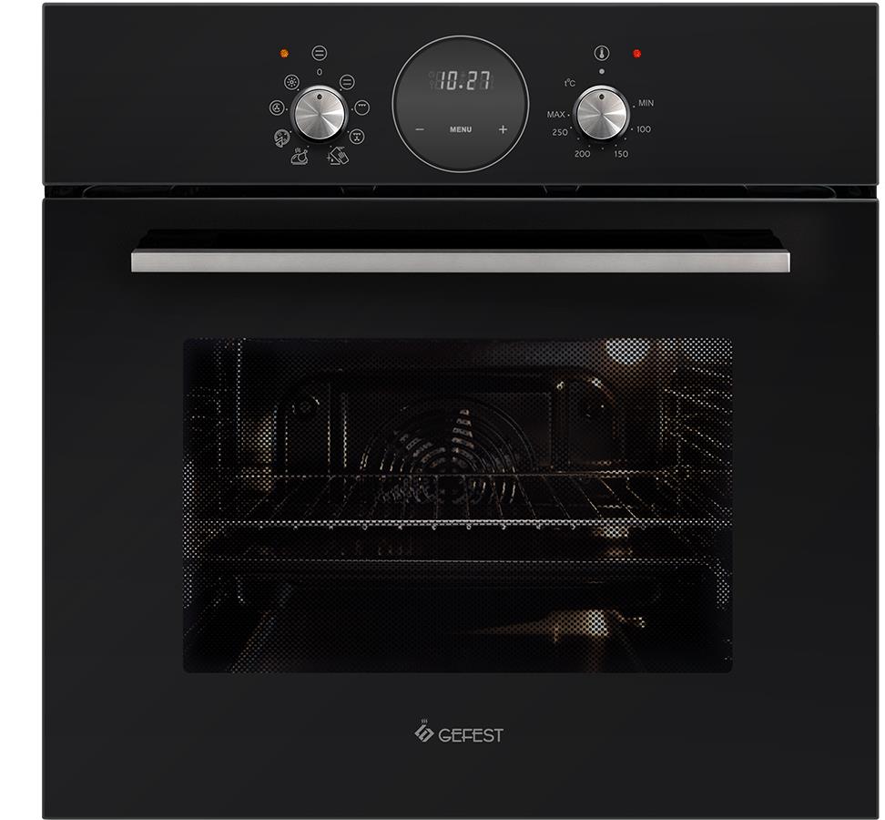 Духовой шкаф. Габаритные размеры ШхГхВ: 59.8х56.5х59.5 см. Цвет: черный. Панель управления: черная матовая. Полезный объём духовки: 55 л, Гриль электрический. Таймер сенсорный. Подсветка духовки двойная. Усиленный гриль с конвекцией. Съемные проволочные направляющие духовки. Утапливаемые ручки управления. Диапазон номинальных напряжений, В: 220230. Фасад: эмалированный. Сетевой шнур и вилка: в наличии. Класс электробезопасности: I.