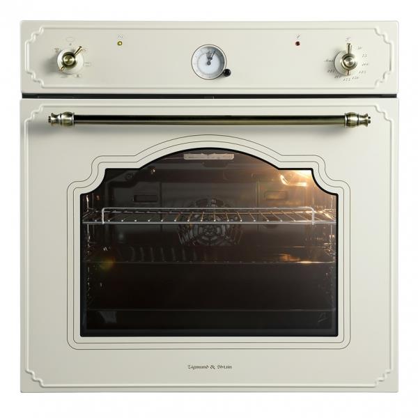 Духовой шкаф (электрический). Цвет: Бежевый, Цвет фурнитуры: брашированная античная латунь, Материал фасада: металл, Класс энергопотребления: A, Управление: поворотные переключатели, Программатор: аналоговый, Объем: 72 литра, Количество функций 6: гриль, гриль с конвекцией, нижний нагрев, верхний и нижний нагрев, верхний и нижний нагрев с конвекцией, подсветка, Мощность: 2950 Вт, МАХ температура нагрева: 250°С, Стекла дверцы: тройное съемное стекло, Панорамное внутреннее стекло Smart Eye, Холодный фронт, Очистка духовки: эмаль Easy Clean, Тангенциальное охлаждение, Хромированные боковые направляющие, Уровней установки противня: 5, Решетка, Противень: стандартный, Габариты (ШхГхВ): 595*570*595, Ниша для встраивания (ШхГхВ): 560*550*589 мм, Длина шнура 1160 мм, Вес нетто: 30 кг, Вес брутто: 33,1 кг, Срок службы до 10 лет.