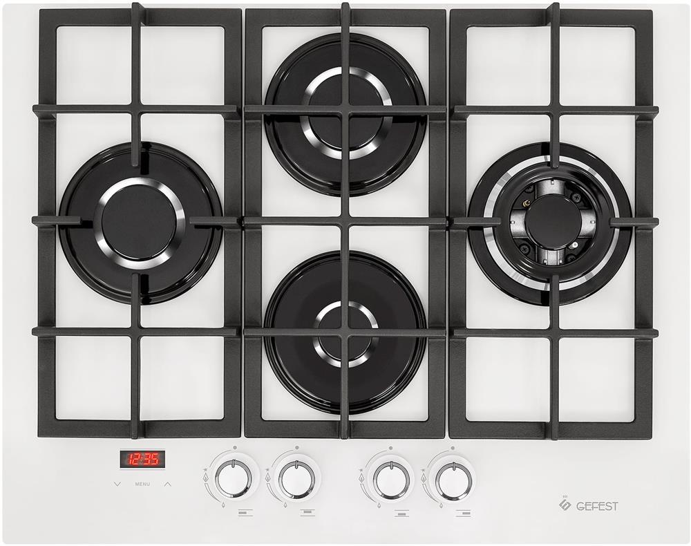 Габаритные размеры ШхГхВ: 67х52.5х10 см * Цвет: белый. Варочная поверхность: стеклянная * Газконтроль горелок стола * Фиксированное положение «малое пламя» * Двухзонная горелка * Чугунные решетки горелок стола * Таймер сенсорный многофункциональный * Электророзжиг горелок, встроенный в ручки * Присоединительная резьба газопровода: G 1/2В *