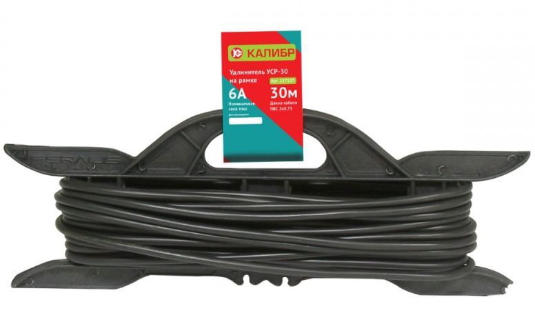 Удлинитель электрический "Калибр УСР30" на рамке, предназначен для работы в сетях переменного тока напряжением 230±10%, ~50 Гц. При помощи удлинителя легко подключить удалённые от стационарной розетки электроприборы, имеющие шнур с плоской или круглой вилкой. Незаменим на стройке, садовом участке, в промышленности и в быту. *в зависимости от поставки, внешний вид рамки может отличаться от представленного на фотографии. Сечение 0,75 мм2. Максимальная нагрузка 6 А, 1300 Вт. Длина кабеля 30 м.