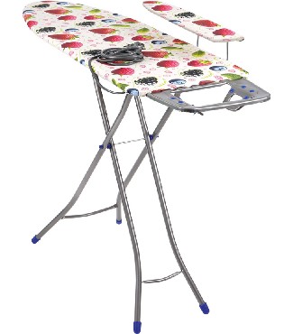 Гладильная поверхность ДСП (1120х345мм), два положения высоты h70, h80см, EUROподставка под утюг с термосиликоном, съемный подрукавник, электросединитель 2,2м, розетка, материал чехлахлопок, max нагрузка на глад.поверхность 15кг.,вес изделия5,54кг. Индивидуальная термоупаковка.