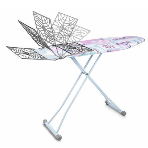 Размер стола (ШxГ) 120x40 см.Паропропускающий широкий металлический моноблок стол.Удобная подставка для утюга.Чехол с антипригарным покрытием.Электростатическая порошковая краска. Антипригарные силиконовые вставки на подставке для утюга.Вакуумная прозрачная упаковка.Полка для белья.