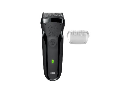 BRAUN 300S BLACK электробритва сеточная система бритья, сухое бритье, работает и от сети и аккумулятора (NiMH, время зарядки 8 ч), 2 бритвенные головки , плавающие головки, подвижный бритвенный блок, водонепроницаемый корпус, Напряжение: 100 240 В, автоматическое переключение.