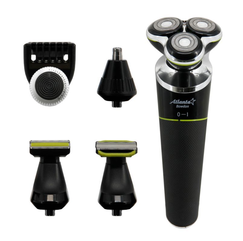 ATLANTA ATH6926 (BLACK) Набор для стрижки и ухода Liion аккумулятор 3,7 В 500 мА/ч Насадка бритва с тремя двойными плавающими головками Насадка триммер для бороды и усов Насадка триммер для ухода за телом Насадка триммер для стрижки в носу и ушах Питание от аккумулятора и от кабеля USB Все насадки можно промывать в воде, степень защиты IPX5 Время зарядки 2 часа Время работы 1 час Подставка для всего набора