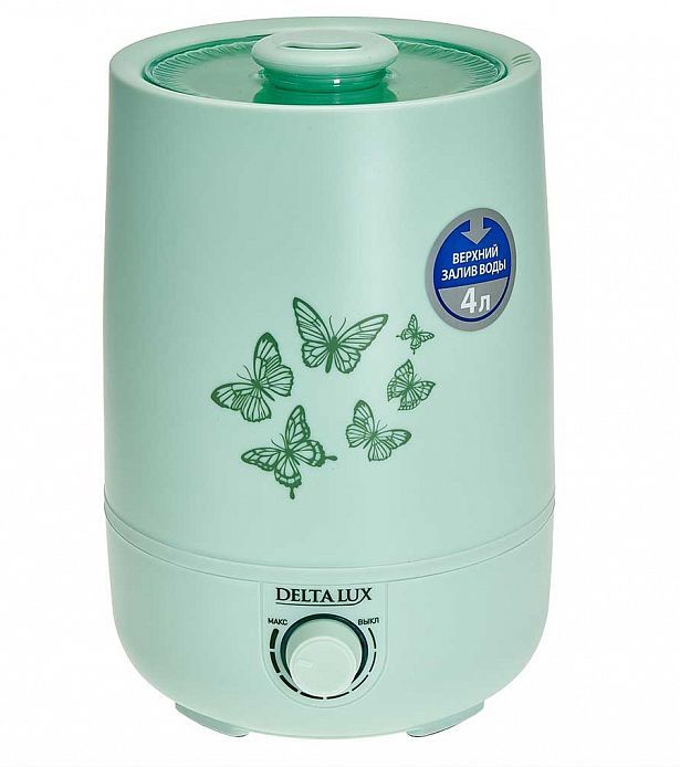 DELTA LUX DE3704 мятный Цвет: мятный Верхний залив воды Механическая панель управления Керамический деминерализующий фильтр для умягчения воды с ресурсом работы 1000 л Голубой световой индикатор работы Красный световой индикатор отсутствия воды Плавная регулировка скорости подачи пара Функция ароматизации Автоотключение при отсутствии воды в резервуаре Номинальная потребляемая мощность 30 Вт Объем резервуара для воды 4 л Площадь обслуживания до 45 кв.м Производительность 120300 мл/ч Время непрерывной работы до 30 ч Размеры 198х198х290мм