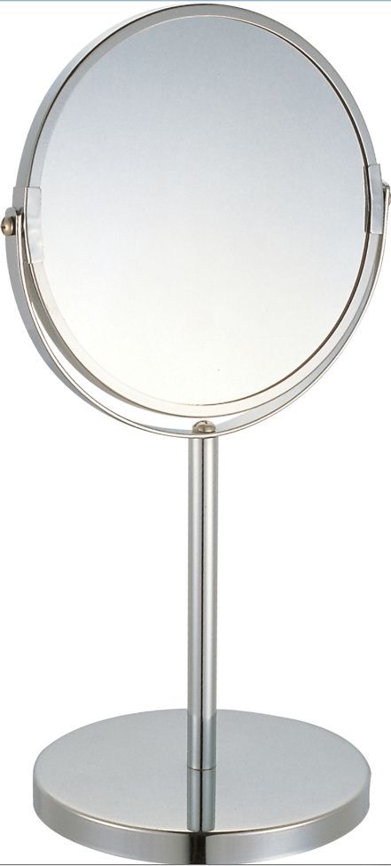 Зеркало косметическое двустороннее на ножке (1/Х5) Размер: 17*17*35 см, диаметр: 17 см Материал: хромированный металл, стекло С одной стороны обычное зеркало, с другой с 5кратным увеличением Упаковка: картонная коробка Настольное двустороннее зеркало в оправе из хромированной стали имеет влагостойкое покрытие и регулятор наклона. Оно будет удобным в ванной комнате или на туалетном столике. У зеркала две поверхности, одна из которых дает обычное отражение, другая с 5 кратным увеличением.