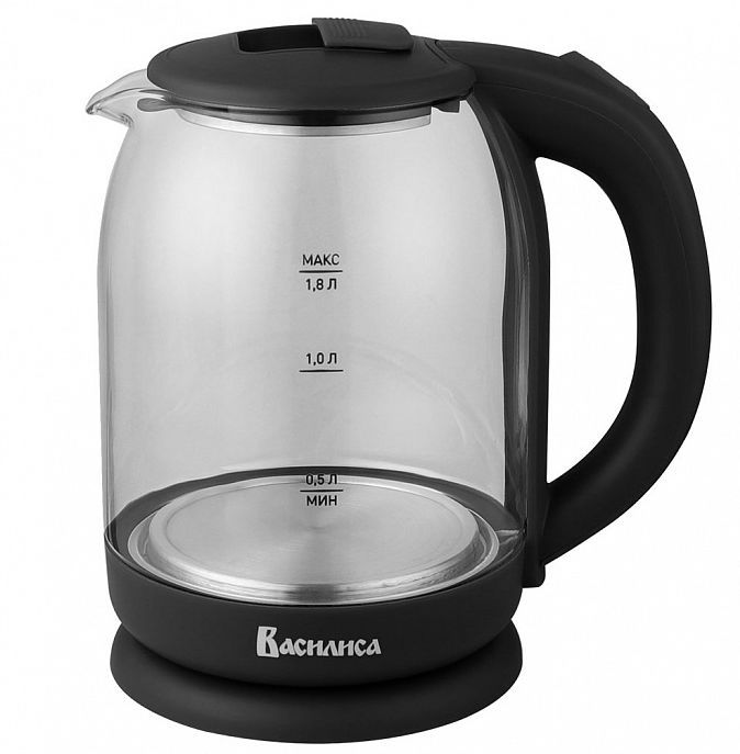 ВАСИЛИСА ВА1034 Параметры Объем 1,8 л Номинальная потребляемая мощность 1500 Вт Описание Корпус из высококачественного термостойкого стекла Закрытый нагревательный элемент из нержавеющей стали Вращение корпуса на 360° Цвет: черный Шкала уровня воды Внутренняя LEDподсветка Отсек для хранения электрошнура Автоматическое отключение при закипании Блокировка включения без воды Упаковка: цветная коробка