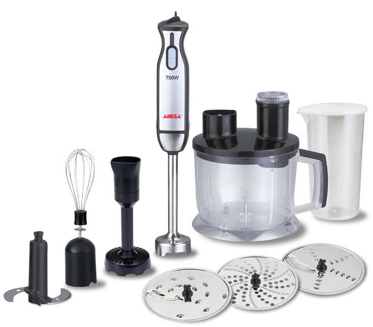 AR1703 КОМПЛЕКТАЦИЯ: Чаша для измельчения (объём 1,75 л) Нож для измельчения Насадкаблендер Мерный стакан для смешивания (объём 0,6 л) с крышкой Венчик для взбивания Насадка для приготовления пюре Дисктёрка для драников Двусторонний диск для тёрки и крупной нарезки Двусторонний диск для шинковки и мелкой нарезки Характеристики Мощность 1000 Вт Объем чаши 1.75 л Плавная регулировка оборотов Система защитной блокировки Режимы: Блендер; Измельчение; Нарезка; Шинковка; Смешивание; Взбивание; Терка Сверхпрочный металлический редуктор 4лопастной нож Витой шнур