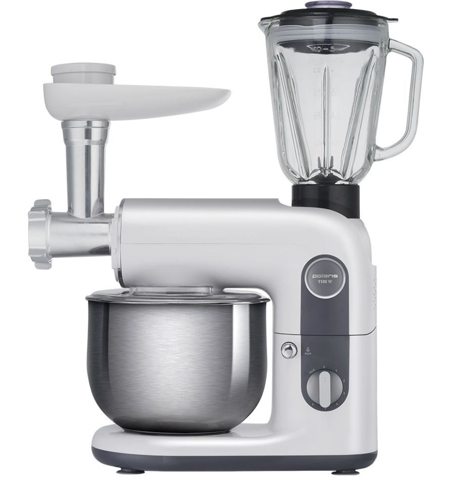Максимальная потребляемая мощность 1100 Вт.Тип управления механическое. 5 в 1: Планетарный миксер с 3мя насадками, Блендер, Мясорубка.Технология SmartMIX прибор автоматически подбирает оптимальную мощность работы для каждого вида и количества ингредиентов.Технология PROtect+ защита двигателя от перегрева.Надёжная конструкция со стальными шестернями.Планетарное вращение насадок.Чаша из нержавеющей стали.Объем чаши 5 л.6 скоростных режимов.Плавная регулировка скорости.Импульсный режим.Венчик для взбивания. Насадка для смешивания.Крюк для замешивания теста.Крышка чаши для добавления ингредиентов.Мясорубка: 2 диска из нержавеющей стали (5 и 7 мм). Кувшин блендера из высокопрочного стекла объемом 1,5 л.Низкий уровень шума. Система безопасного включения.Защита двигателя от перегрева.Отсек для намотки сетевого шнура.Прорезиненные ножки.
