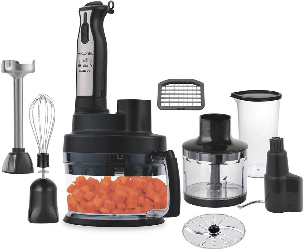 Кухонный процессор Viconte VC0450 1600 W, Кухонный процессор, мощность 1600 W, чаша для нарезки кубиками 2,0 литра, чаша для измельчения – 500 мл, пластиковый стакан с крышкой – 600 мл, насадкатестомес, диск для шинковки, насадка для нарезки кубиком ( 8*8 мм), венчик для взбивания, металлическая нога блендера, пульсовый режим работы, 6 скоростей, Турбо режим, плавная регулировка скоростей, LED индикатор работы, лезвия из нержавеющей стали, прорезиненное основание для устойчивости, удобство и простота в обращении и чистке.