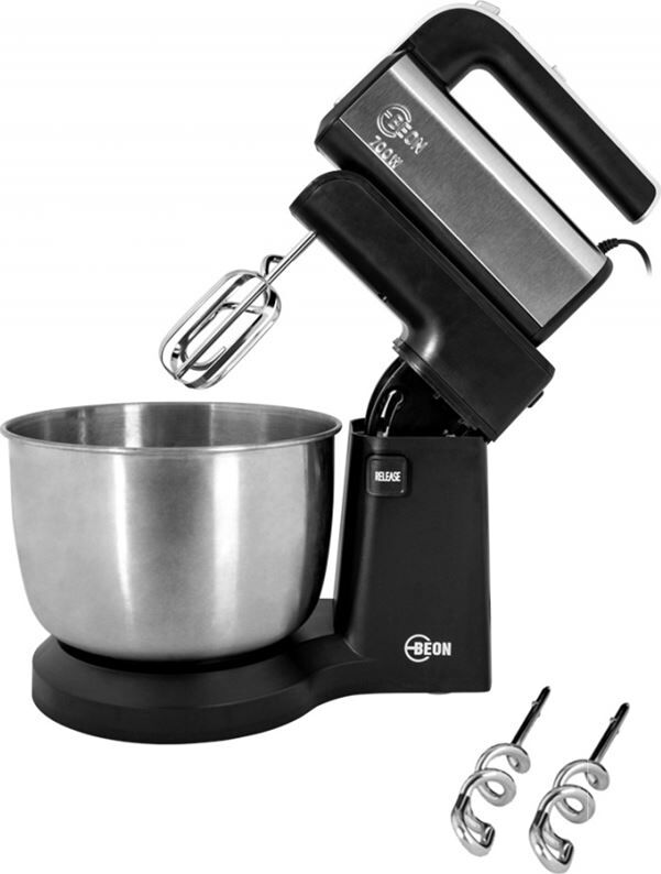 Миксер 2 в 1: ручной и стационарный; Корпус миксера и чаши: нержавеющая сталь; Мощность: 700 Вт; Объем чаши: 3 л; Автоматическое вращение чаши; 5 скоростей + турборежим; LEDподсветка; 2 венчика; 2 крюка для теста; Кнопка извлечения насадок; Возможность использования без подставки; Длина шнура: 1 м; Параметры питания: 220240 В ~ 5060 Гц