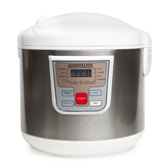 12 программ и предустановок, Имеет функции отложенного запуска и подогрева пищи, Индикация стадии приготовления блюд, Чаша с антипригарным покрытием, Облицовка корпуса из нерж. стали, Режим поддержания тепла, Таймер с LEDиндикацией, Аксессуары в комплекте (ложечка, мерный стакан, приспособление для готовки на пару), Объем чаши — 5 литров, Мощность — 950 Вт, 220240 V / 50 Hz.