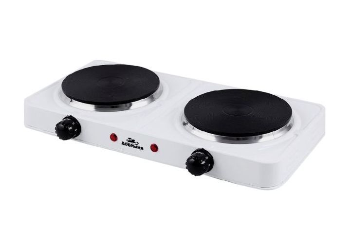 Плитка электрическая настольная. Количестово конфорок: 2шт. Мощность: 2х1000Вт. Тип конфорок: чугунные. Диаметр конфорок: 150мм. Количество режимов нагрева: 5. Световые индикаторы работы. Сеть питания: 220В/50Гц. Защита от перегрева. Резиновые ножки. Материал корпуса: эмалированная сталь. Цвет: белый