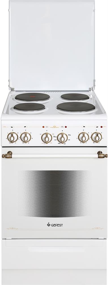 Габариты, ШхГхВ, см: 50x58.5x85; Цвет: с рисунком "ретро", белый; Дизайн: ретро; Ширина, см: 50; Фасад: эмалированный; Варочная поверхность: эмалированная; Крышка стола: металлическая крышка; Количество зон приготовления: 4; Класс энергоэффективности: А; Диапазон номинальных напряжений, В: 220230; Номинальная потребляемая мощность электроэнергии, кВт: 5,055,52; Объем духовки, л: 55; Мощность верхнего ТЭН духовки, кВт: 0,8; Мощность нижнего ТЭН духовки, кВт: 1,2; Управление: механическое; Подсветка духовки: одинарная; Направляющие духовки: штампованные; Терморегулятор; Ящик для посуды и принадлежностей: выдвижной ящик; Ножки регулировочные; Сетевой шнур и вилка: в наличии; Комплектность: решетка духовки, жаровня 2 шт