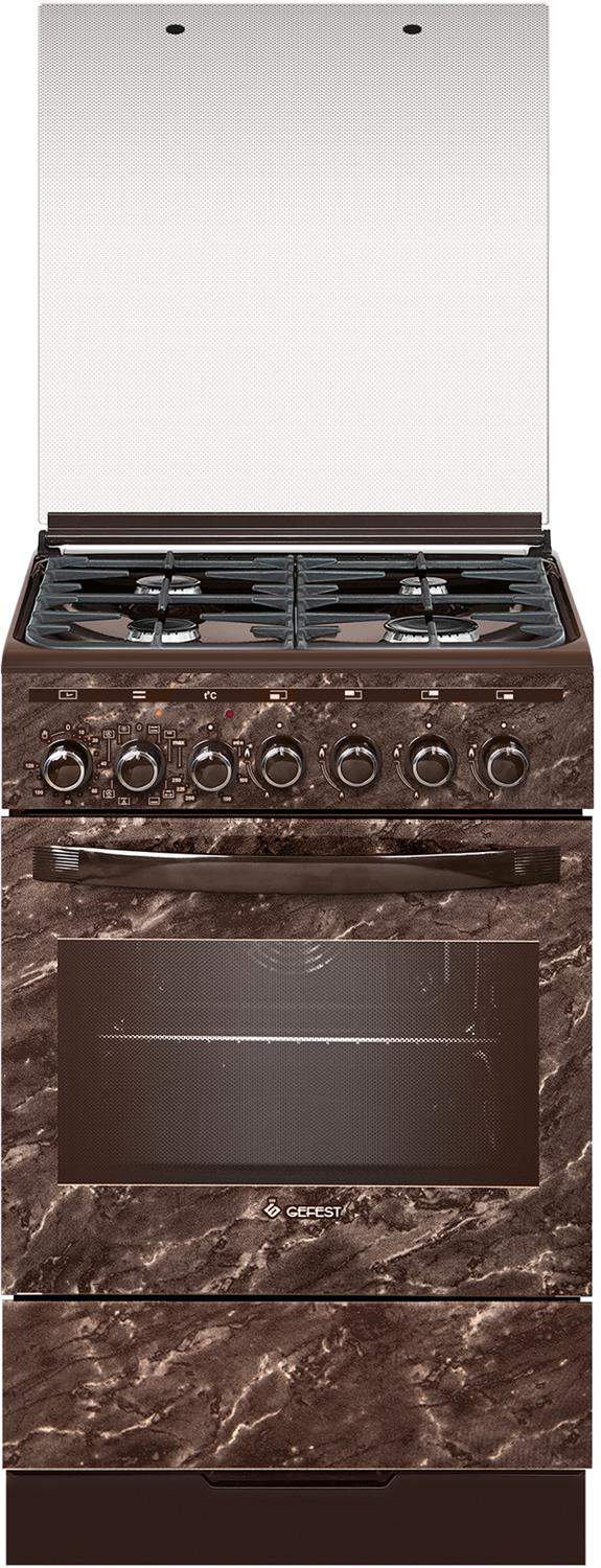 Габаритные размеры ШхГхВ: 50х58.5х85 см * Цвет: коричневый с рисунком "мрамор". Варочная поверхность: эмалированная * Объём духовки: 55 л. Духовка: электрическая * Вертел с электроприводом * Съемные проволочные направляющие духовки * Выдвижной ящик для посуды и принадлежностей * Таймер электромеханический * Газконтроль горелок стола * Терморегулятор (термостат) * Гриль электрическийУсиленный гриль с конвекцией * Ножки регулировочные * Чугунные решетки горелок стола * Подсветка духовки одинарная * Электророзжиг горелок, встроенный в ручки *