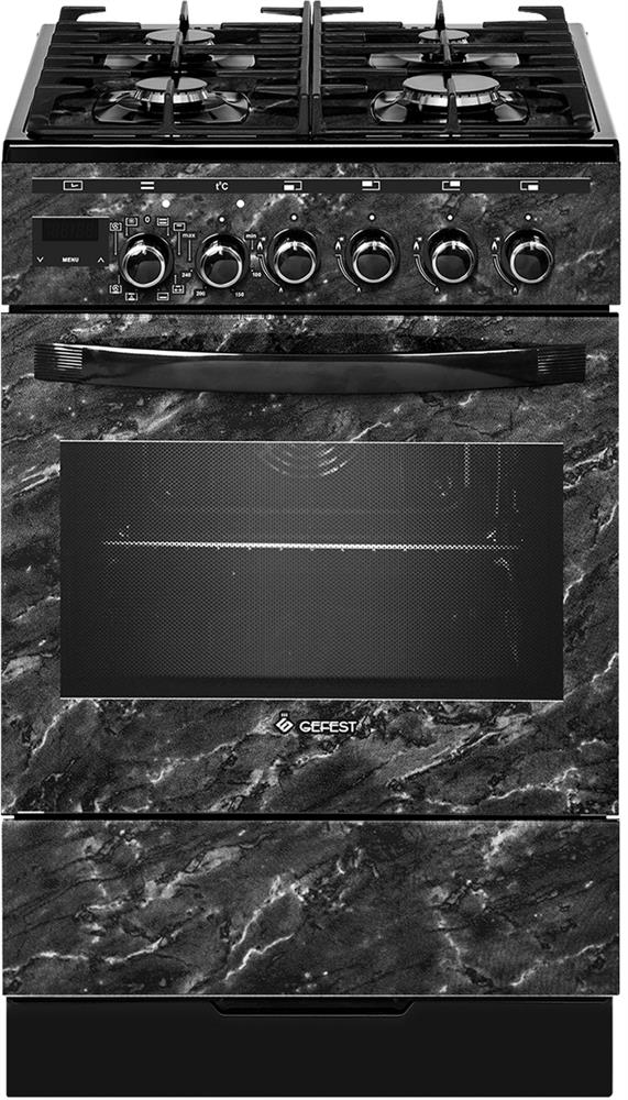Газоэлектрическая плита. Цвет: черный с рисунком "мрамор". Варочная поверхность: стеклянная. ШхГхВ: 50х58.5х85 см. Объём духовки: 55л. Масса нетто, кг: 45.8. Диапазон номинальных напряжений, В: 220230. Духовка: электрическая. Без крывшки. Присоединительная резьба газопровода: G1/2. Вертел с электроприводом. Выдвижной ящик для посуды и принадлежностей. Газконтроль горелок стола. Гриль электрический. Ножки регулировочные. Подсветка духовки одинарная.Съемные проволочные направляющие духовки. Таймер сенсорный многофункциональный. Терморегулятор (термостат). Ускоренный нагрев с конвекцией. Чугунные решетки горелок стола. Шашлычница. Электророзжиг горелок, встроенный в ручки.