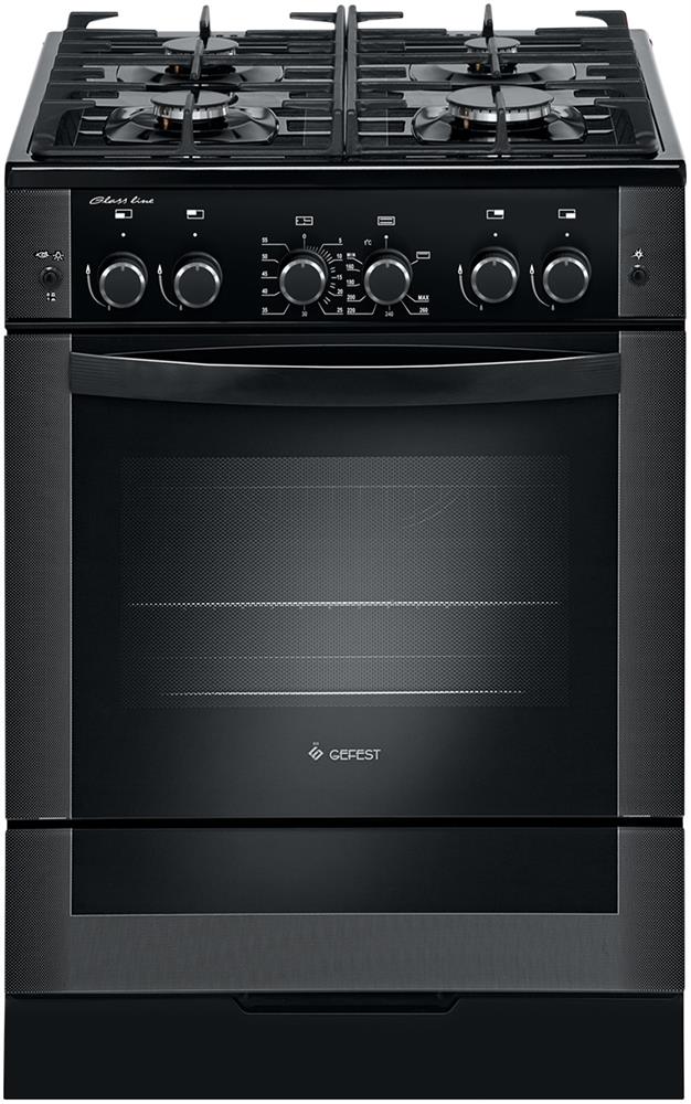 Габариты, ШхГхВ, см: 60x60x85; Цвет: черный; Дизайн: классик; Ширина, см: 60; Фасад: закаленное стекло; Варочная поверхность: закаленное стекло; Решетки стола: чугунные; Класс электробезопасности: I; Объем духовки, л: 52; Мощность горелки духовки, кВт: 3,1; Мощность грильгорелки, кВт: 1,9; Таймер: механический; Газконтроль духовки; Электророзжиг духовки: кнопка на панели; Электророзжиг горелок стола: кнопка на панели; Гриль: газовый; Вертел с электроприводом; Подсветка духовки: Направляющие духовки: съемные проволочные; Терморегулятор (термостат); Ящик для посуды и принадлежностей: выдвижной; Ножки регулировочные; Сетевой шнур и вилка: в наличии; Стекло дверцы духовки: двойное; Комплектность: жаровня, накладка для посуды малого диаметра, противень, решетка духовки; Комплект сменных сопел
