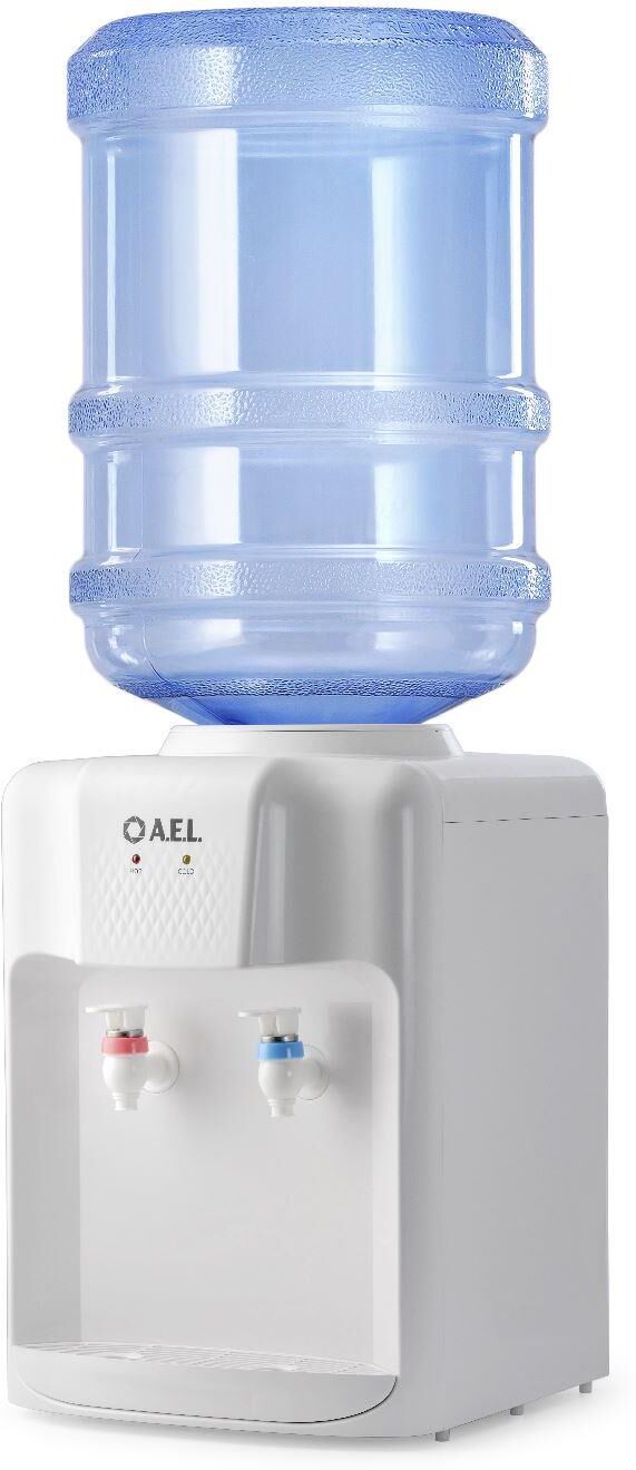Настольный кулер для воды с электронным охлаждением и верхней загрузкой бутыли. Имеет компактные размеры, благодаря чему легко устанавливается на стол или тумбочку не загромождая пространство. Оснащен двумя механическими кранами типа "нажим рукой" для подачи горячей и охлажденной воды. Для включения/отключения нагрева или охлаждения на задней стенке корпуса расположены специальные тумблеры. Корпус изготовлен из высококачественного пищевого пластика. Кулер подходит как для домашнего, так и для офисного использования, на предприятиях и учреждениях.
