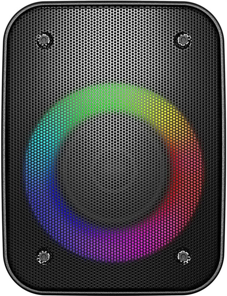 Воспроизведение аудиофайлов по Bluetooth v. 5.0;; Количество динамиков: 1 динамик;; Размер динамика: 3”;; FM радио (87.5108MHz);; Пиковая музыкальная выходная мощность: 20Вт;; Частотный диапазон: 20 Гц 20000кГц;; Отношение сигнал/шум: 96 дБ;; Воспроизведение с USB2.0, TFкарта (до 32GB);; Поддерживаемые аудиоформаты: MP3;; Аудиовход AUXIN (3.5mm jack);; Встроенная LiIon батарея: 1500mAh, 3.7V;; Время работы от аккумулятора: до 7 часов;; RGB подсветка динамика;; Функция True Wireless Stereo;; Микрофонный вход: 6.35mm jack;; Комплектация: USB кабель, инструкция;; Разъем для подключения внешнего источника питания 5В (Micro USB);; Размер устройства: 176x134x124мм;; Вес устройства: 0.65 кг;; Цвет: черный.