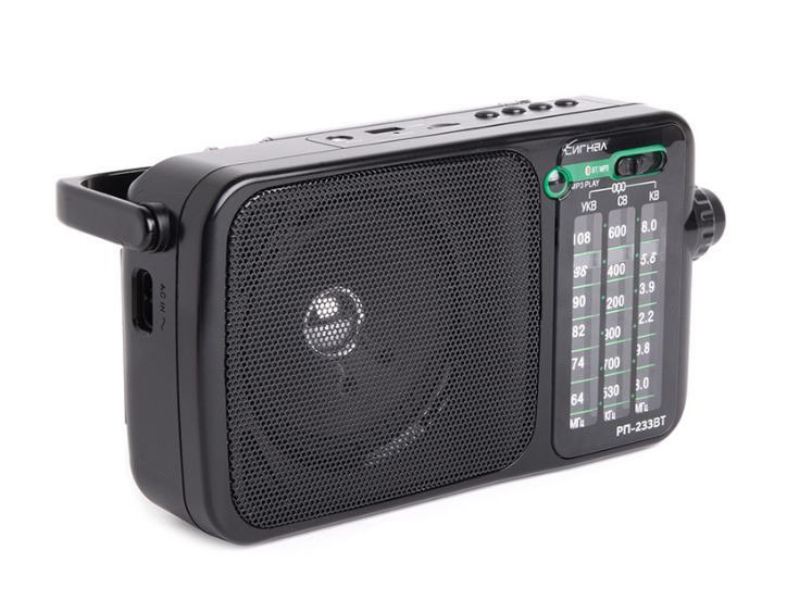 Аналоговый тюнер. УКВ/СВ/КВ диапазоны ( УКВ 64108МГц СВ (5301600)КГц КВ 816МГц), колво динамиков 1шт, монозвучание, динамик мощностью 89MM/8Ом/5W, питание 220V, батарейки R20*2шт, не в комплекте, вluetooth версия 4.2, возможность прослушивания с USB, возможность прослушивания с micro SD, возможность регулировки басов, размер 235x120х80мм.