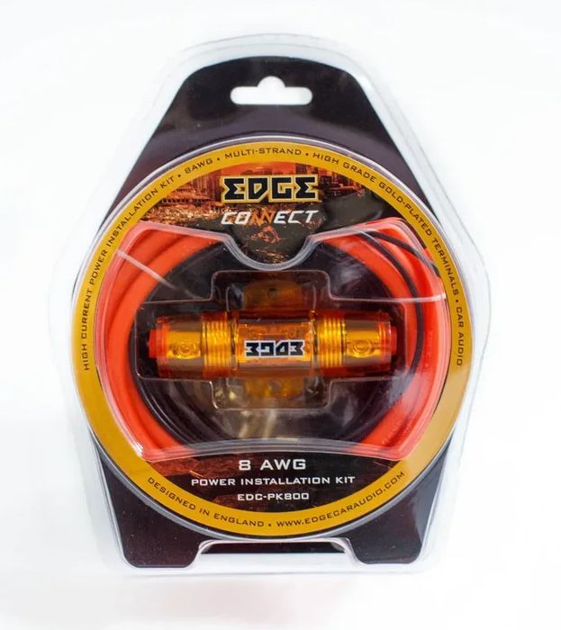 Набор силовой 8Ga для установки автомобильных усилителей Кабель силовой 8Ga оранжевый 5метров (ССА) Кабель силовой 8Ga черный 1метр (ССА) Управляющий провод синий 18Ga 5 метров (ССА) Держатель для предохранителя MiniANL 1 штука Предохраниитель MiniANL 40A 1 штука Кольцо обжимное 8Ga 2 штуки Вилка обжимная 8Ga 2 штуки Обжимные трубки для 8Ga 2 штуки