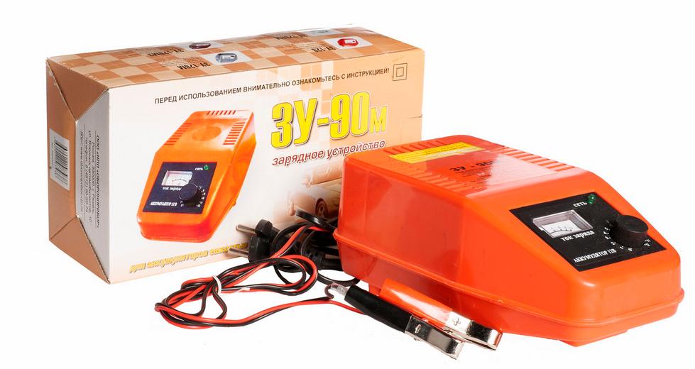 Применяется для заряда 12В кислотных автомобильных аккумуляторов. 5090 Ач. ЗУ обладает функцией плавной регулировкой тока. В зарядное устройство встроена защита от переполюсовки, короткого замыкания и перегрева (термозащита) с индикацией. Модель оснащена зажимами для подключения к аккумуляторной батарее и проводами подключения к АКБ. Устройство упаковано в индивидуальную коробку. В ЗУ встроен амперметр для контроля выходного тока. Трансформаторное зарядное устройство ЗУ90М является надежным и простым в эксплуатации.