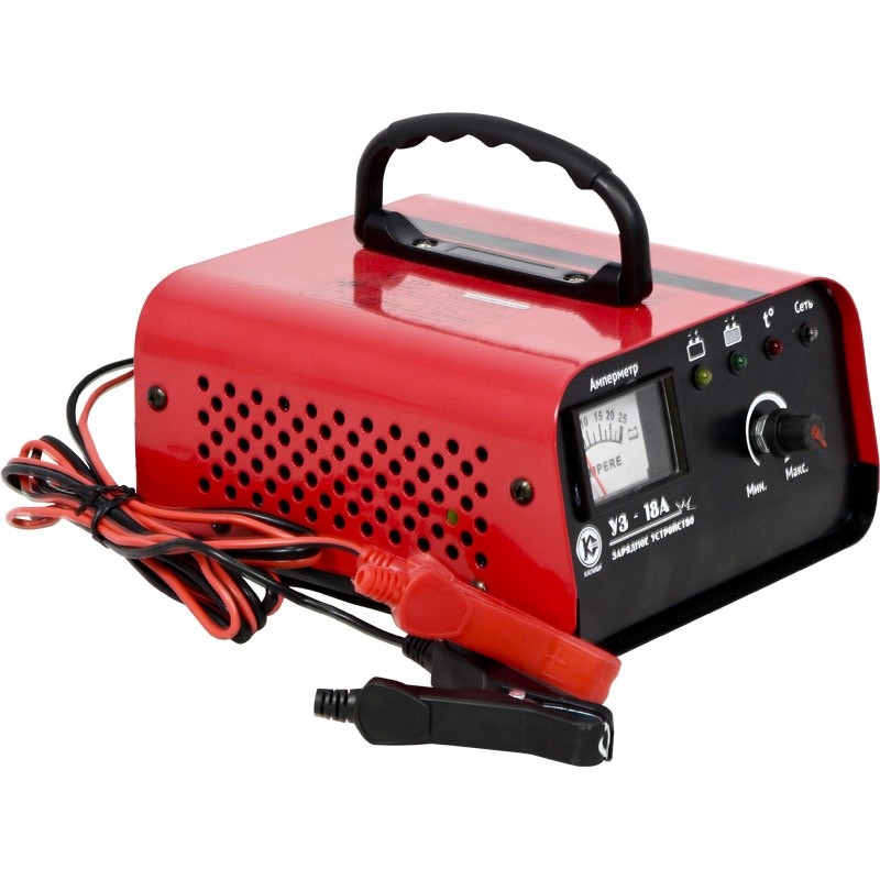 Зарядное устройство Калибр УЗ18А предназначено для зарядки аккумуляторных батарей (А.Б.) бензиновых и дизельных двигателей автомобилей,мотоциклов,лодок (6В,12В и 24В) и т.п.,встроенный вентилятор.Характеристики,Номинальное напряжение 220 В,Частота 50 Гц,Напряжение зарядки 12 В,Диапазоны плавной регулировки выходного тока 418 А,Выходное напряжение (равно напряжению на клеммах АБ) 014.8 В,Ёмкость заряжаемой аккумуляторной батареи 7270 Ач,Степень защиты (МЭК 60529) IP20,Встроенный вентилятор +,Габариты в упаковке (ДхШхВ) 245х185х120 мм,Вес (брутто/нетто) 1.5/1.4 кг.