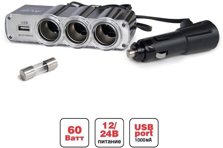 AVS CS314U прикуривателя 12/24 (на 3 выхода+USB)