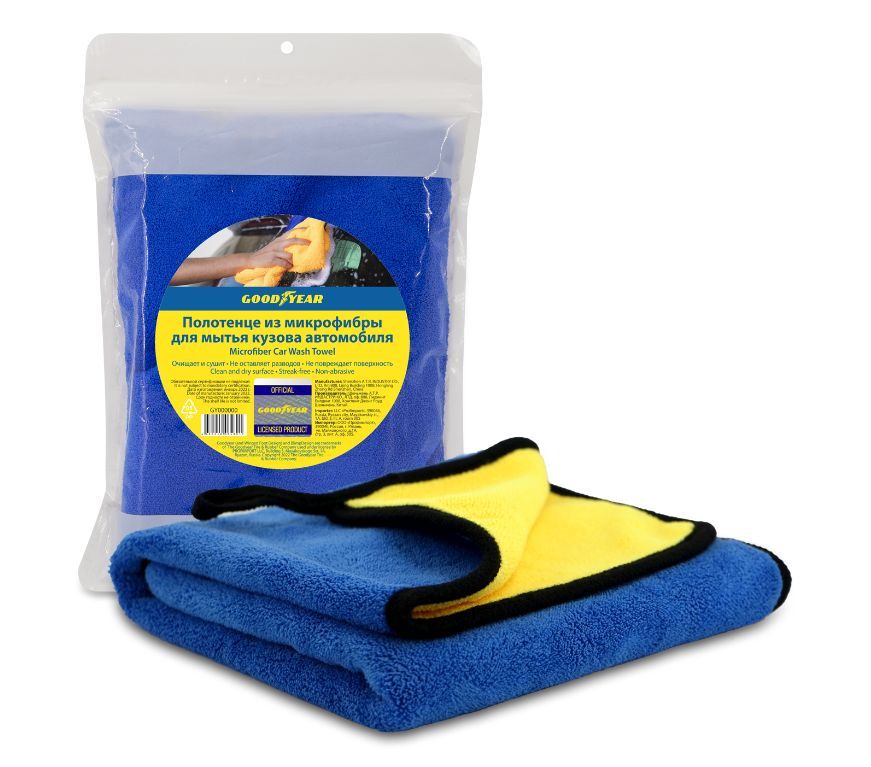 Полотенце из микрофибры для мытья кузова автомобиля Goodyear 40x60 см (600 г/м2) Универсальное двустороннее полотенце из микрофибры Goodyear предназначено для влажной и сухой уборки салона автомобиля, а также для сушки кузова после мойки и удаления конденсата с любых поверхностей. Ткань с коротким прямым ворсом идеально подходит для мытья автомобиля, глубокой очистки и удаления загрязнений с использованием жидких чистящих средств без вреда для ЛПК. Полотенце упаковано в пакет с ziplock, в котором удобно хранить изделие в автомобиле.
