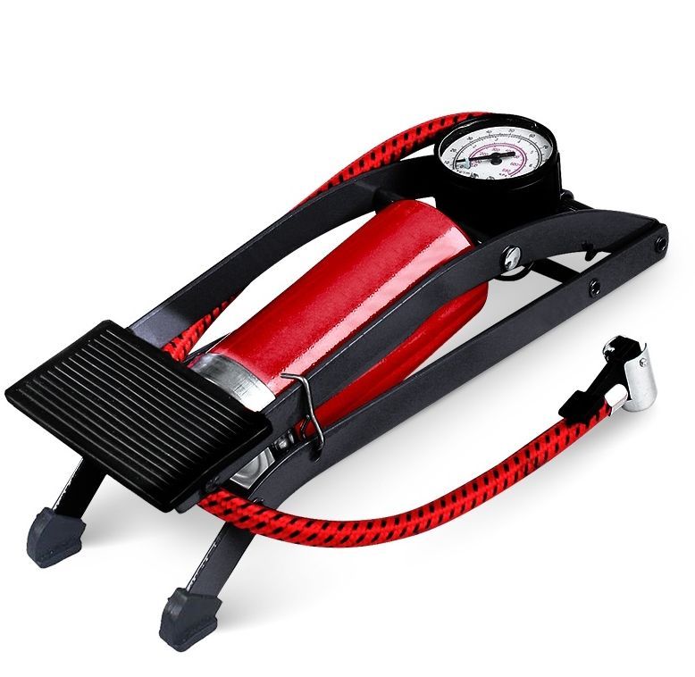 Насос состоит из опорной рамы, педали, поршня со штоком, цилиндра, возвратной пружины, манометра со шлангом и невозвратным клапаном. Максимальное давление: 7 АТМ Объём цилиндра: 180 см3 Длина резинового шланга: 50 см Комплектация: насос механический, набор насадок Размеры насоса: 28х8х7,5 см Вес: 0,81 кг