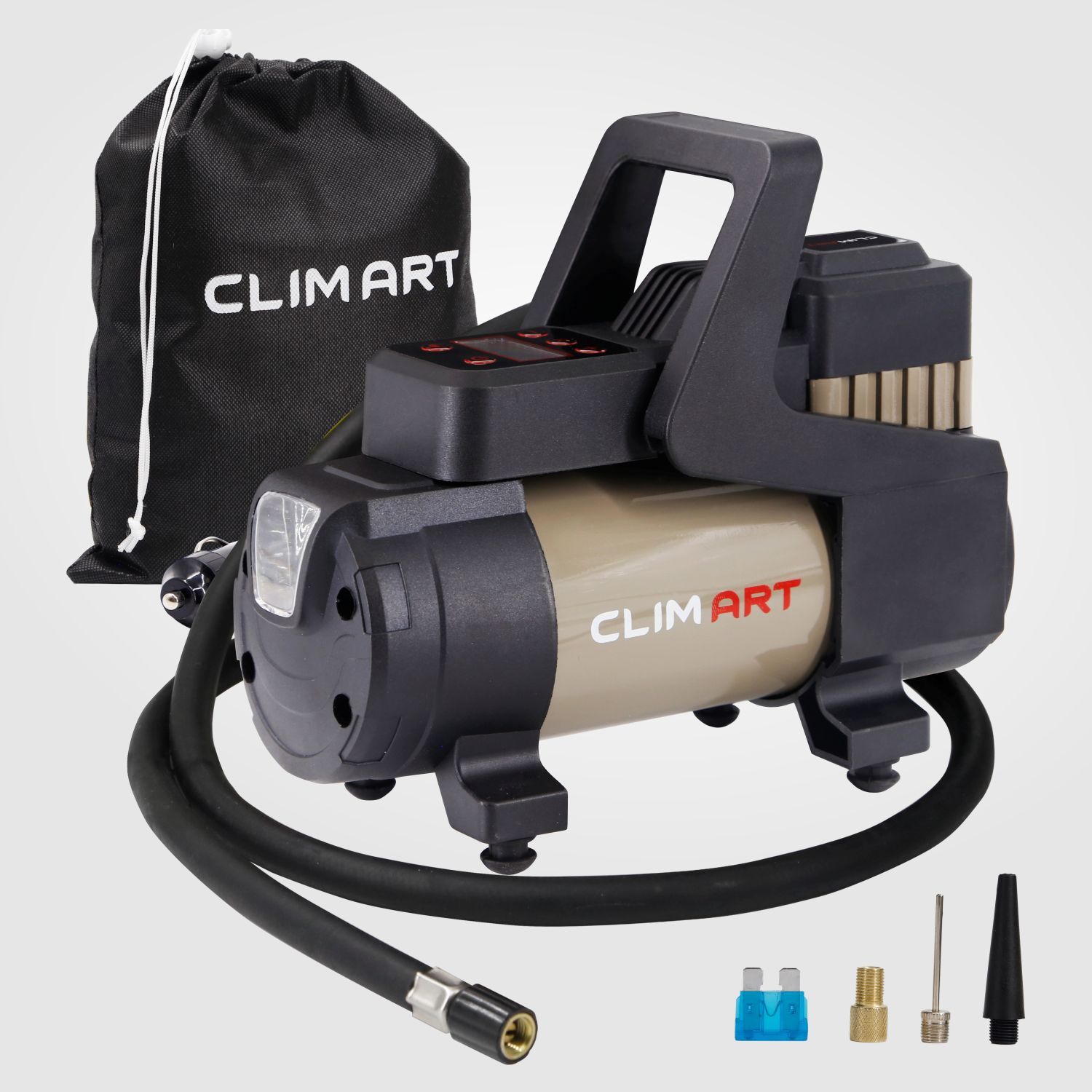 Автомобильный компрессор " Мощность: 168 Вт " Производительность: 35 л / мин " Давление: до 9 Атм " Максимальное токопотребление: 14 А " Питание: 12V " Длина провода питания: 3 м " Длина воздушного шланга: 1 м " Температура эксплуатации: 40… + 60 С° " Защита: плавкий предохранитель " Материал: Сталь " Вес: 1,50 кг " Объем: 0,002 куб.м " Металлическая поршневая группа " Высокоточный цифровой манометр " Функция автоматического отключения по достижению заданного давления " Универсальный автомобильный предохранитель в капсуле " Время непрерывной работы: 30 мин " Сумкамешок для хранения и переноса компрессора " Переходники в комплекте " Фонарь Питается автокомпрессор от прикуривателя. Автомобильный предохранитель в капсуле защищает устройство и сеть автомобиля от скачков напряжения в случае нештатной работы компрессора.