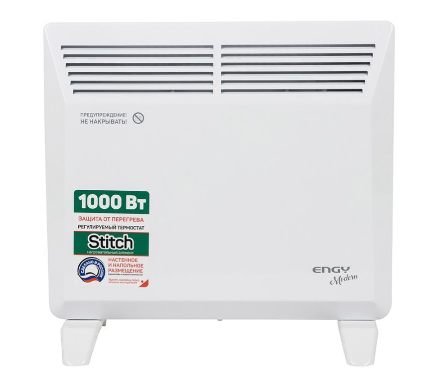 Серия Modern Мощность 1000 Вт Современный дизайн Защита от перегрева Световой индикатор работы Регулируемый термостат. Нагревательный элемент Stitch. Настенное и напольное размещение. Размеры конвектора (Ш*В*Г) 46*44,2*22,3 с ножками / без ножек 46*40*8,3 см. Площадь обогрева до 15 м2. Класс электрозащиты I. Степень защиты IP20. Экологичный, экономичный, бесшумный. Гарантия 12 месяцев. Напряжение 220240В 50Гц.