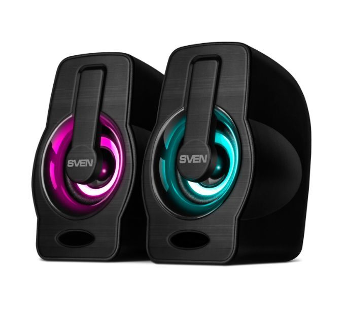 Акустическая система с динамической RGB подсветкой, выходная мощность (RMS), Вт 6 (2 х3), частотный диапазон, Гц 100 – 20 000, размеры динамиков, мм O 50, напряжение питания USB / DC 5V, номинальный ток потребления, А 0,04, материал корпуса пластик, размеры изделия, мм 78 х 119 х 79