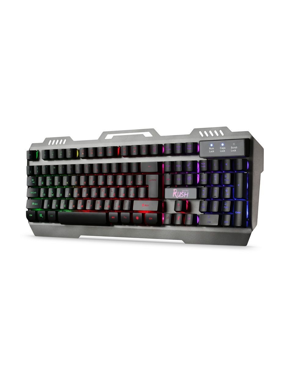 Клавиатура игровая, проводная, мультимедийная,количество клавиш 104, полноразмерная, стандартная раскладка, дополнительные клавиши 12 (одновременно с клавишей FN), интерфейс подключения USB, индикаторы Num Lock / Scroll Lock / Caps Lock , настраиваемая Rainbow подсветка, металлический корпу, технология Antighosting позволит играть вдвоём на одной клавиатуре, длина кабеля 1,53 м.