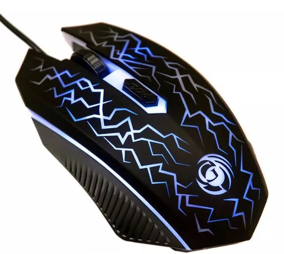 Игровая оптическая проводная мышь с подсветкой. Крупная симметричная мышь подходит одинаково и для правшей, и для левшей. Подсветка красная, зеленая, синяя, фиолетовя, голубая сменяется циклически. Матовый черный пластик, верхняя панель с кнопками пластик софттач. Вставки из полупрозрачного светлого пластика (подсветка). Динамически изменяемое разрешение циклически центральной кнопкой (800/1200/1600 dpi). Количество кнопок 4. Длина шнура 1,5 м. Размер 125*70*33 мм. Вес 71 г.