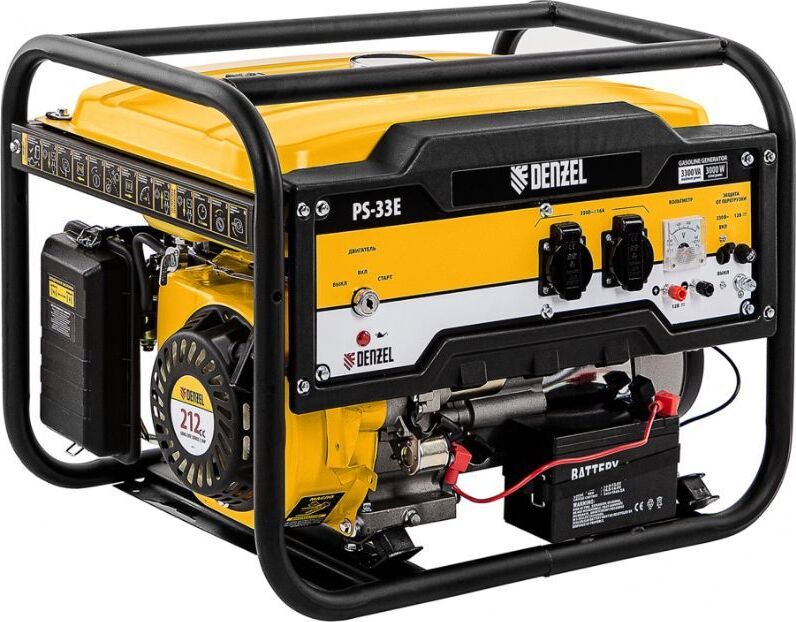 DENZEL PS33E Генератор бензиновый, 3.3 кВт, 230В, 15 л, электростартер 94537