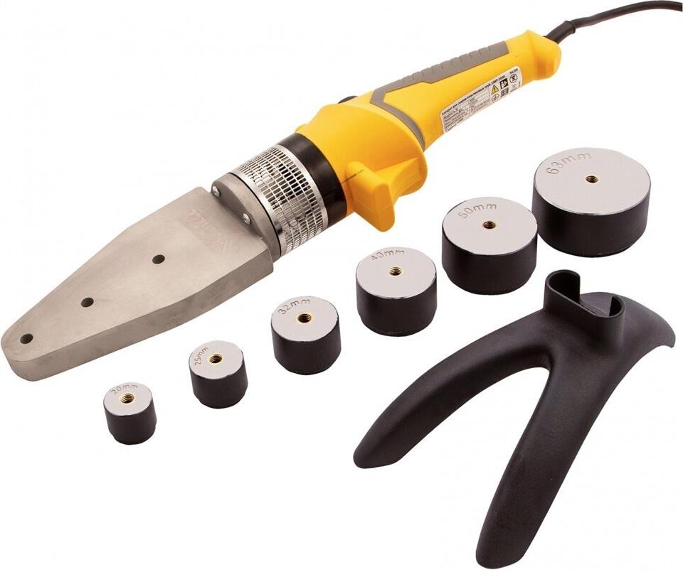 Аппарат для сварки (пайки) пластиковых труб торговой марки DENZEL предназначен для прочного соединения труб из полипропилена и полиэтилена в домашних условиях. Технологический процесс заключается в нагреве/размягчении двух монтажных компонентов и соединении их под давлением. Технические возможности аппарата DENZEL позволяют регулировать температуру нагрева изделий до 260 300 °С. Применение сменных насадок позволяет соединять трубы диаметром от 20 до 63 мм. Насадки имеют тефлоновое покрытие, предупреждающее налипание пластика к их поверхности.