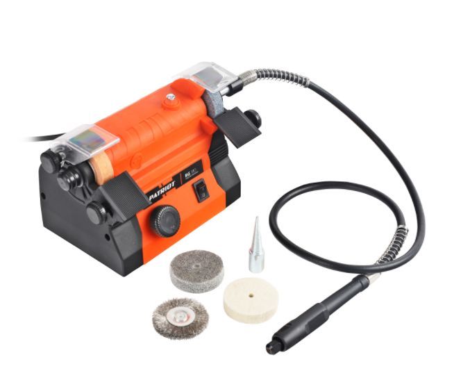 Длина гибкого вала, см 105, Пылезащитная кнопка включения, Потребляемая мощность, Вт 100, Посадочный диаметр, мм 12,7, Зернистость, круг левый/круг правый 80/100, Прорезиненный морозостойкий кабель, Регулировка скорости, положений, Посадочный диаметр диска, мм 12,7, Размер заточного диска, мм 50х13.