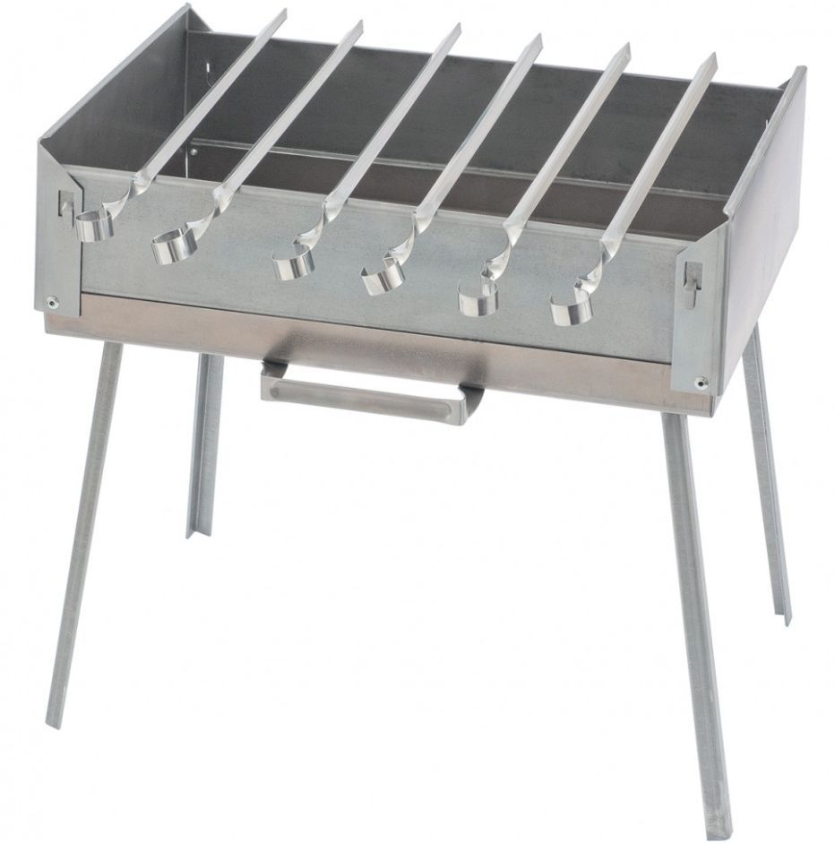 Предназначен для приготовления мяса и рыбы на открытом воздухе с использованием древесного угла и дров. Размер 410х280х125 см. Толщина стенки 1,5 мм. Материал: жаропрочная углеродистая сталь. Поставляется в комплекте с шампурами 6 штук и сумкой для транспортировки. Шампуры 6шт. изготовлены из нержавеющей стали, длина 390 мм , толщина 1,5 мм. Вес 4,1 кг.