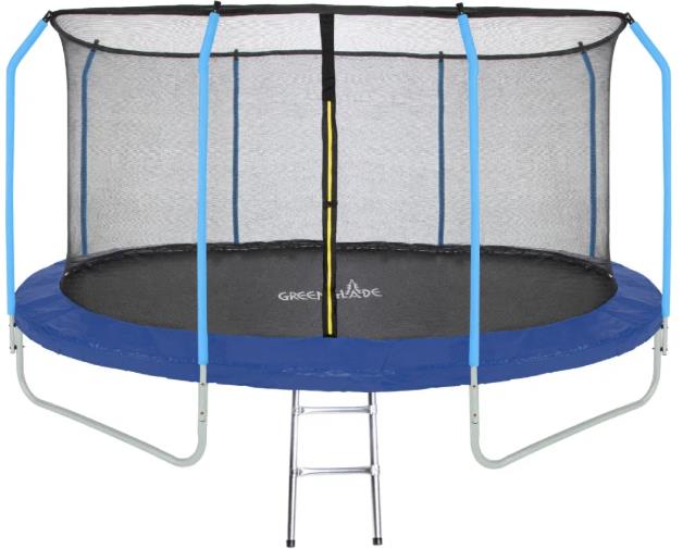 Батут Green Glade – это удовольствие для всей семьи, ведь не только дети мечтают весело провести время, но и взрослые не исключение. Батут – замечательный подарок, который сможет поднять настроение абсолютно всем и каждому. Помимо развлечения, это еще и спортивная нагрузка, поэтому есть возможность совместить приятное с полезным. • Батут 12футовый (4 ножки + 8 стоек) • Размер (ДМхВ): 360х250 см • Вес нетто: 55 кг • Объем: 224,7 л • Максимальная нагрузка: 150 кг • Защитные стойки: оцинкованная сталь (25х1,2 мм) • Защитная сетка: полиэтилен • Верхнее крепление сетки: металлическое кольцо • Трубы каркаса: оцинкованная сталь (38х1,2 мм) • Пружины: 72 штуки • Мат: полипропилен • Лестница в комплекте • Количество коробок: 2 штуки ( см и см) • Вес брутто: • Производитель: Green Glade