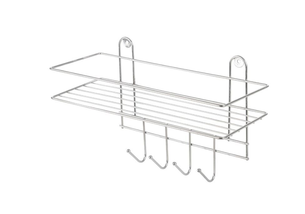 РЫЖИЙ КОТ Полка настенная Lecco Plus 33*12,5*21 см 4 крючка хром (310865)
