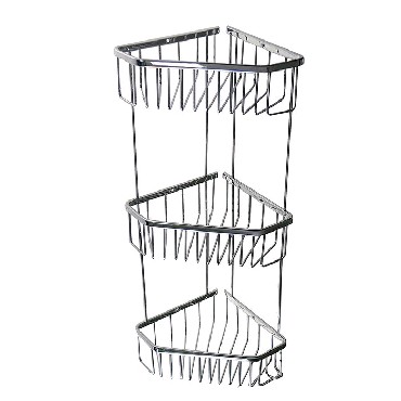 Полочка угловая, пятиугольная, трёхэтажная, для принадлежностей, решётка обладает высокими эксплуатационными характеристиками и подходит для использования дома, в общественных местах: отелях, ресторанах и пр. Изготовлена из прочной нержавеющей стали с хромоникелевым покрытием, которое придает безупречный глянцевый блеск и долговечность. Металлическая полка оснащена крючкоми. Аксессуар не занимает много места, надежно фиксируется к стене при помощи набора креплений (входят в комплект) и служит удобным местом для хранения бытовых и косметических средств. Габаритные размеры: высота 560 мм, ширина 250 мм, глубина 180 мм, расстояние между полками 175 мм. Вес  1,500 кг, объём  0,02125 м3.