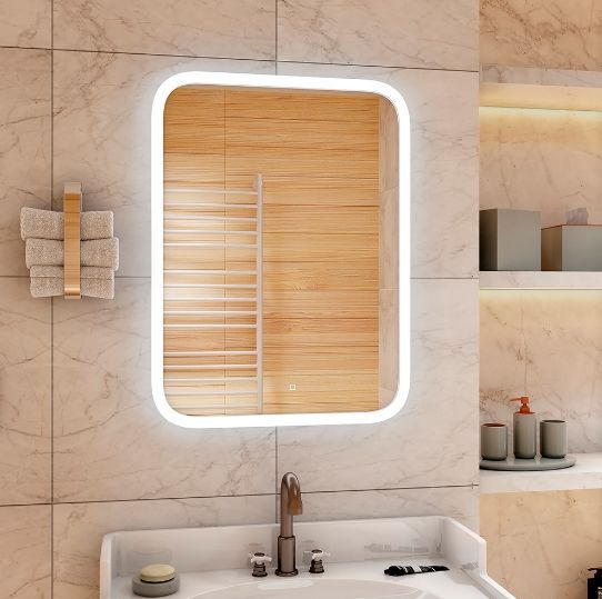 Зеркало с внутренней LED подсветкой, прямоугольное, сенсорное, с пескоструйной обработкой, изготовлено из влагостойкого зеркального полотна толщиной 4 мм производства AGC GLASS EUROPE. Корпус изготовлен из высокопрочного пластика АБС. Источник света скрыт за зеркальной поверхностью, световое зеркало представляет собой идеальное сочетание стеклянной поверхности и глубокой игры света. Край полотна обработан для защиты от порезов при контакте. Питание от сети 220В, сенсорный выключатель, температура свечения LED 6000К, светодиоды 2835 (120), 220 V / 50 Hz. Управление подсветкой осуществляется сенсорным выключателем. Срок службы диодов 30000 часов. LED подсветка зеркала имеет нейтральный оттенок белого свечения. Изделие прошло обязательную сертификацию и может использоваться в помещениях с повышенной влажностью воздуха. В комплект поставки входит крепеж. Габаритные размеры: высота 700 мм, ширина 500 мм. Вес 5,500 кг, объём 0,02060 м3.