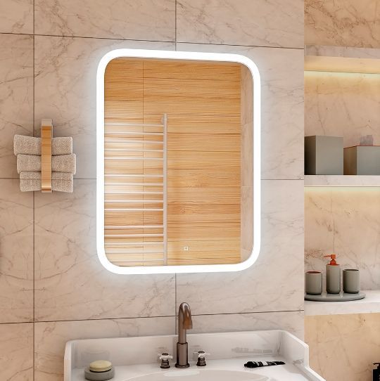 Зеркало с внутренней LED подсветкой, прямоугольное, сенсорное, с пескоструйной обработкой, изготовлено из влагостойкого зеркального полотна толщиной 4 мм производства AGC GLASS EUROPE. Корпус изготовлен из высокопрочного пластика АБС. Источник света скрыт за зеркальной поверхностью, световое зеркало представляет собой идеальное сочетание стеклянной поверхности и глубокой игры света. Край полотна обработан для защиты от порезов при контакте. Питание от сети 220В, сенсорный выключатель, температура свечения LED 6000К, светодиоды 2835 (120), 220 V / 50 Hz. Управление подсветкой осуществляется сенсорным выключателем. Срок службы диодов 30000 часов. LED подсветка зеркала имеет нейтральный оттенок белого свечения. Изделие прошло обязательную сертификацию и может использоваться в помещениях с повышенной влажностью воздуха. В комплект поставки входит крепеж. Габаритные размеры: высота 800 мм, ширина 600 мм. Вес 7,200 кг, объём 0,02200 м3.