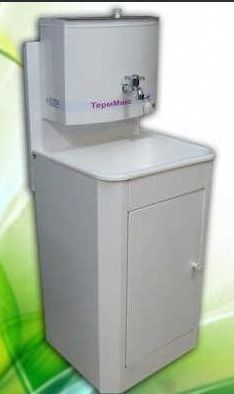 Умывальник ТЕРММИКС с ЭВН белый, пластик.бак и мойка отечественный умывальник, производимый в Челябинске. Имеет пластиковый бак и мойку, поэтому коррозия не страшна данному умывальнику с водонагревателем. Тумба покрыта порошковой краской. Технические характеристики: Тип: Умывальник Производитель: ТЕРММИКС С электроводонагревателем Цвет: белый Пластиковый бак и мойка Металлическая тумба Мощность ЭВН: 1,25кВт При достижении 60 градусов атоматически отключается Объем бака 17 литров Водяная защита ТЭНа Размер бака: 345х480х100 (высота, ширина, глубина) Задняя стенка бака: 740х480х380 Размер тумбы: 740х480х380 Масса: 14 кг Производство: Россия