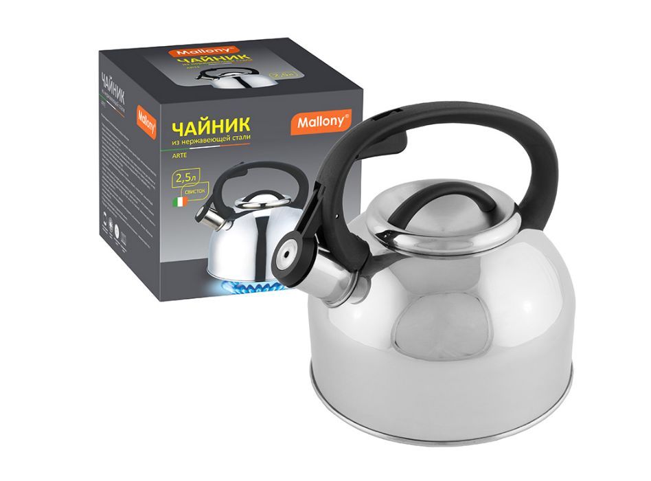 MALLONY Чайник из нерж стали со свистком "Arte" (зеркальная полировка) 2,5 л (005177)