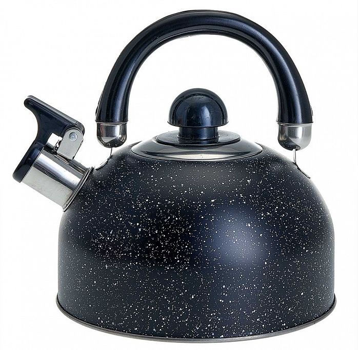 WEBBER BE0539 Чайник из нерж.стали 2,5л.,индукционное дно Параметры Объем 2,5 л Описание Чайник из нержавеющей стали со свистком Высококачественная нержавеющая сталь c цветным покрытием Цвет: черный мрамор Матовая полировка Индукционное дно Подвижная ручка из термостойкого пластика Цвет ручки: черный Пригоден для использования на всех типах кухонных плит, включая индукционные